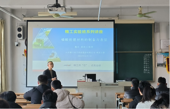 12月7日上午,太阳集团网tyc9728邀请山东精工电子科技股份有限公司研发一部材料研发主管、高级工程师魏东在综合楼1215为“精工实验班”全体同学授课。