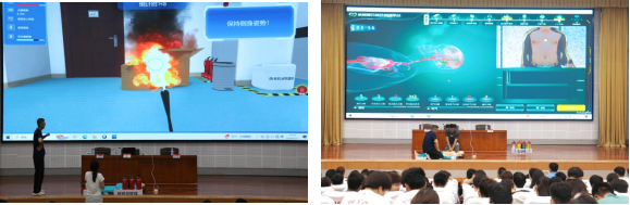 此次活动由消防安全专题培训、灭火应急演练和心肺复苏实训三个环节组成,通过虚实结合的创新方式,开展生动的实验室安全教育和安全设施的实操训练。整个活动过程中,师生们表现出极高的热情和参与度,积极学习和体验了先进的安全培训设备。