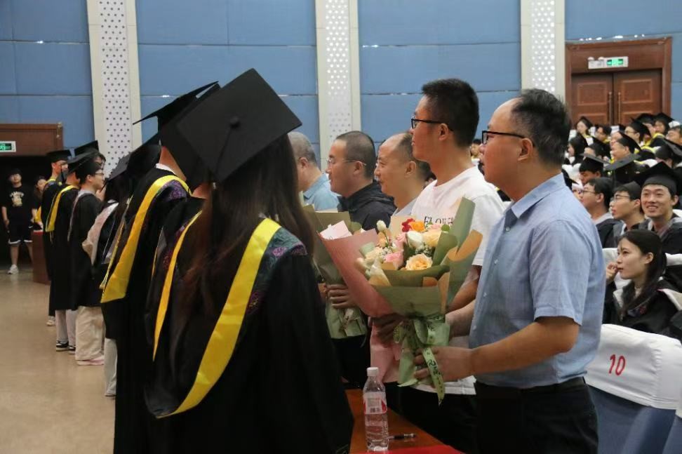 教师代表王后臣发言,言语中满是对毕业生的不舍与期许。他回忆起与同学们相处的点点滴滴,课堂上热烈的讨论、实验室里并肩攻克难题的场景历历在目。在校生代表王晴表示要接过师哥师姐传递的接力棒,继续秉承学院优良传统。毕业生代表张宇深情回顾了四年求学时光,感恩学校提供的优质教育资源、老师们的谆谆教诲和同学们的互帮互助。分享了从初次接触专业课程学习时的好奇,到逐渐明确方向,再到参与科研项目、实习实践的成长。临别之际,毕业生以鲜花表达心意,向亲爱的老师送上诚挚的感谢与致敬。