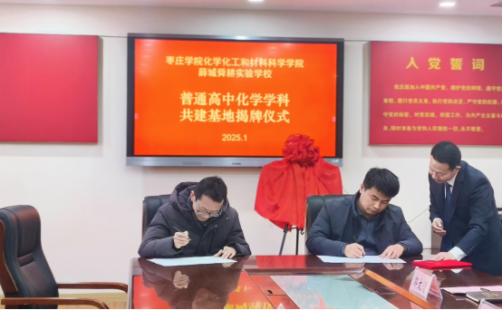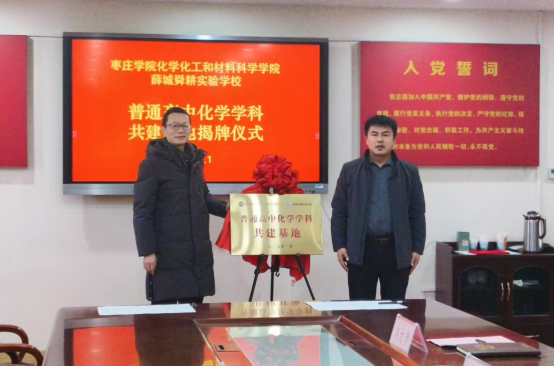 为充分发挥学校人才智力优势和教学资源条件,服务枣庄中学教育,深化合作办学,搭建优质教学实践平台,提升人才培养质量,1月8日上午,学院副院长马杰、化学专业负责人闫春燕赴枣庄市薛城区舜耕实验学校参加“tyc太阳成集团9728校外实践教学基地”和“普通高中化学学科共建基地”的揭牌仪式。薛城区教体局教学研究中心主任郝东蕴、副主任燕传勇,舜耕实验学校校长郭文清、副校长王保才,以及舜耕实验学校化学教研室全体教师一同参加了揭牌仪式。王保才主持了揭牌仪式。