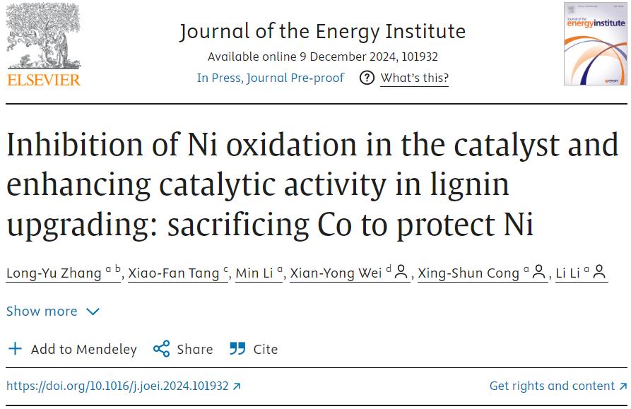 两篇论文分别以《Catalytic hydrodeoxygenation of lignin enhanced by selectively etching ZSM-5》和《Inhibition of Ni oxidation in a Ni-based catalyst to enhance the catalytic activity for lignin upgrading: Sacrificing Co to protect Ni》为题,tyc太阳成集团9728为第一单位,张龙宇为第一作者,李莉和丛兴顺为通讯作者。张龙宇是我校与曲阜师范大学联合培养的硕士研究生,在我校的导师为李莉博士和丛兴顺教授,自2023年10月开始,在我校全职培养,经过一年多的科研探索,取得了较多创新性成果,目前已撰写英文论文5篇,发表2篇。联合培养工作为学校的硕士点建设及下一步独立培养硕士研究生奠定了坚实基础。
