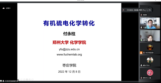 12月8日下午,太阳集团网tyc9728邀请郑州大学付永柱教授,以《有机硫电化学转化》为题为学院师生作学术报告。会议由院长刘春丽主持,全体教师参会并听取专家学术报告。