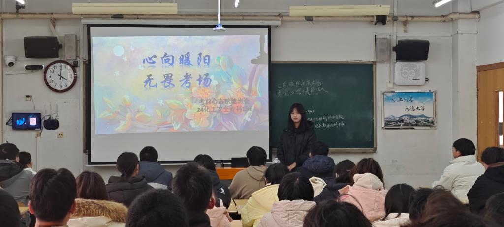 随着期末考试的临近,为帮助同学们以轻松、自信的状态迎接考试,特别召开“心向暖阳,无畏考场-考前心态赋能”主题班会,为学院学子送上了一份心灵的关怀与支持。