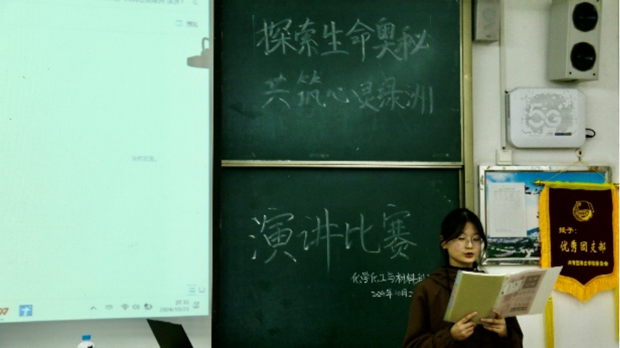 本次活动以个人演讲和多人合作演讲的形式进行。选手们可以根据需要,在演讲过程中借助多媒体设备来播放图片、视频和背景音乐,由评委对个人表现进行打分。优美的声音,激昂的语调,飞扬的神采,在场的评委和同学们共享着这一视听盛宴。