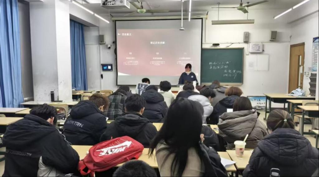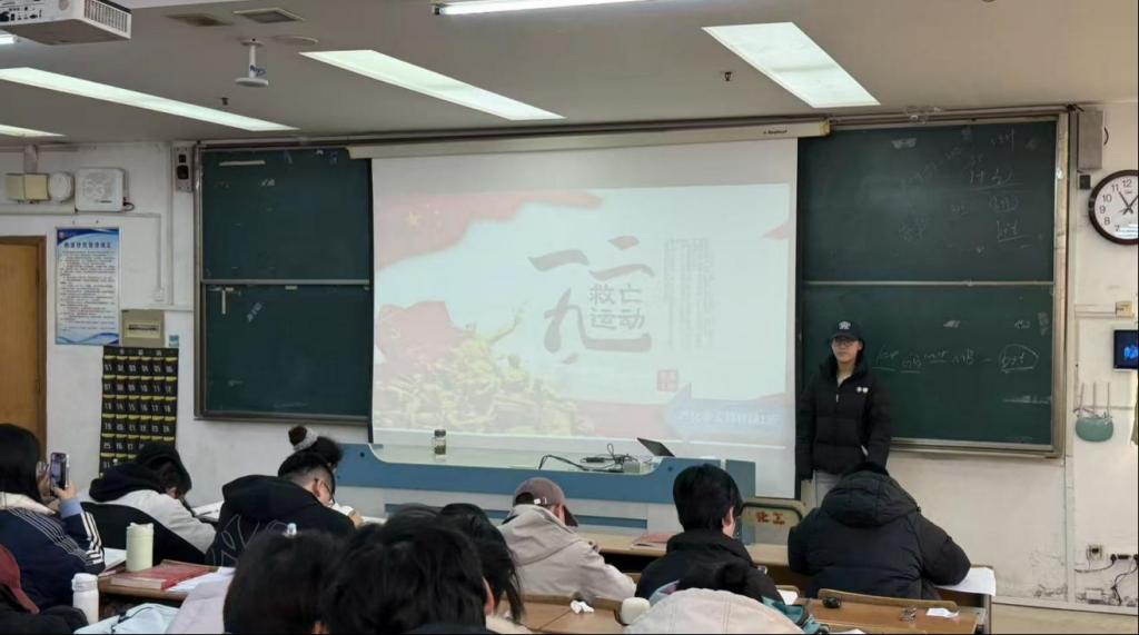 各团支部带领同学们回顾“一二·九运动”的历史背景与重要意义,通过讲述革命先辈的英勇事迹,播放历史影像资料等形式,让同学们重温那段波澜壮阔的抗争岁月。同学们踊跃发言,结合当下时代背景与个人理想,畅谈心得体会。大家一致表示,要将“一二·九运动”所彰显的爱国情怀与奋斗精神内化于心、外化于行,以史为鉴,勇担时代重任。