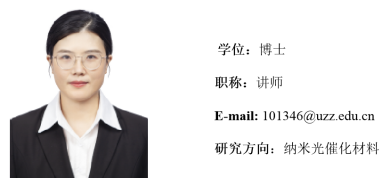 徐本燕,博士,讲师,中共党员,2017年毕业于山东大学材料学专业,现任化学教研室主任,主讲《物理化学》《物理化学实验》《教师专业发展》《中学德育原理》等课程。2017年7月至2018年5月在山东省舜天化工集团有限公司担任研发部副主任。2020年2月至2021年2月在枣庄市渴口中学挂职进修。主要研究方向为纳米光催化材料体系及多功能晶体材料的性能研究,相关研究成果已在Crystal Research and Technology,Materials,Crystals,Journal of Materials Chemistry A,Chemical Communications,Chemical Engineering Journal,Catalysis Communications等国际重要学术刊物上发表SCI论文10余篇。主持横向课题1项,参与多项省部级自然科学基金项目。