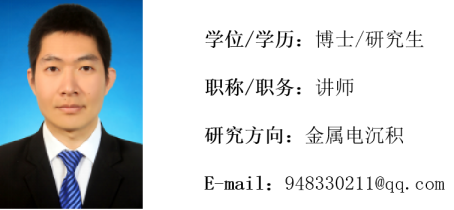 3. 孔德龙, 李建, 彭大抗, 王紫玉,黎德育,李宁. 柠檬酸盐-葡萄糖酸盐体系电沉积锡钴合金工艺[J]. 电镀与涂饰, 2019, 38(12): 563-567.