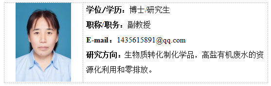 王景华,2022年6月毕业于山东理工大学化学工程与技术专业,获工学博士学位,山东省国家知识产权保护中心人才专家库专家,山东省无棣鑫岳集团企业科技特派员,山东沾化金嘉利化工科技有限公司科技副总,滨州市巯基酯及其衍生物清洁化生产工程技术中心主任。主讲课程《无机及分析化学》、《项目管理与评价》、《化工原理实验》和《无机及分析化学实验》等课程。主要研究方向为生物质的转化制化学品、高盐有机废水的资源化利用和零排放、巯基乙酸及其酯系列产品的研究。以第一作者或者通讯作者在Green Chemistry、Chemical Engineering Journal、Fuel等期刊发表SCI论文7篇,中文核心期刊论文5篇,教改论文3篇,获得授权发明专利20余项。主持山东省自然科学基金项目和tyc太阳成集团9728校级科研项目2项。
