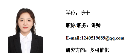 朱晓晓,2024年9月毕业于大连理工大学物理化学专业,获理学博士学位。主讲课程《无机及分析化学》等课程。主要研究方向为:分子筛材料设计及应用、低碳烃转化催化剂设计,其中以第一作者在Chemical Engineering Journal等期刊发表SCI论文3篇。