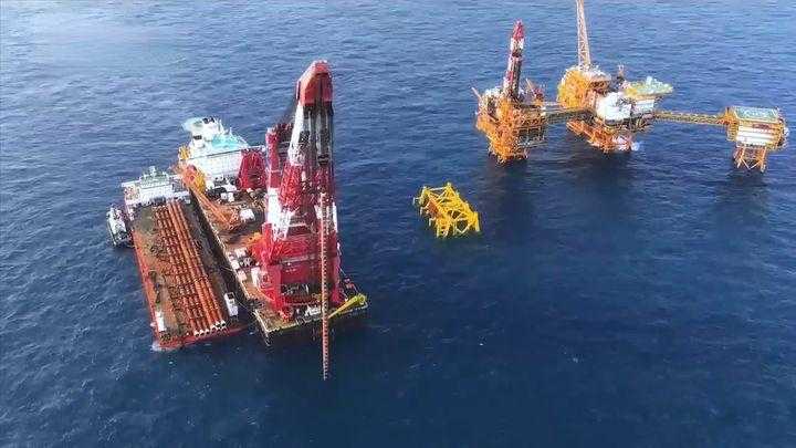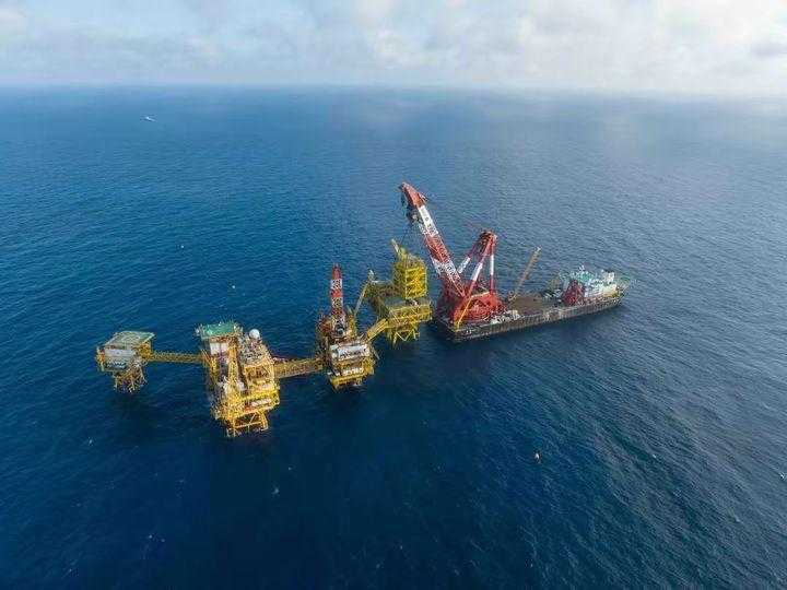 今年2月28日,“中国海油”发布消息称该企业位于海南崖城海域的“深海一号”二期综合处理平台海上安装作业全部完成。该平台由下部导管架和上部生产设施组成,总高约136米,堪比一座49层楼房的高度。